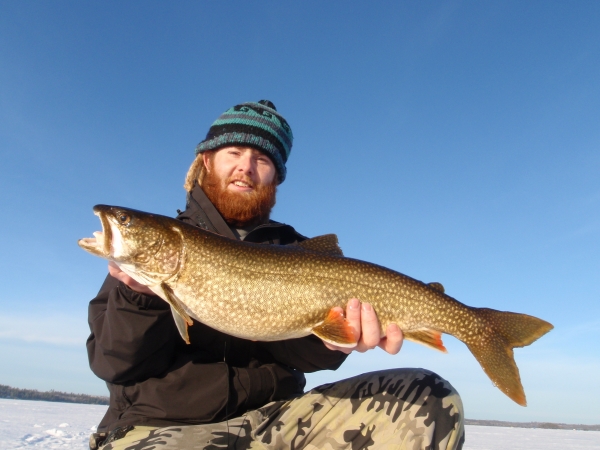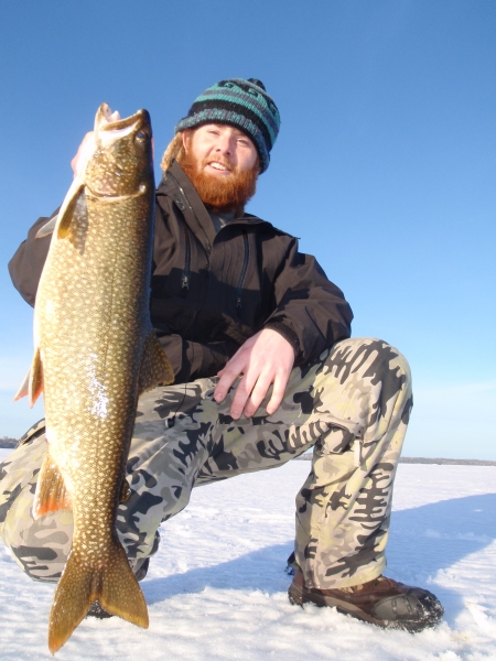 27 inch estimated 6-8lbs caught on Get Bit Baits 4″ tube in 31 feet of water Snowbank Lake, BWCA, Ely,MN
